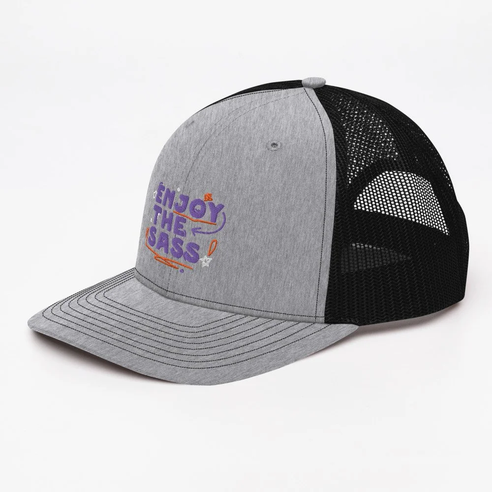 Complete your outfit with an embroidered trucker cap—combine it with a sports tee, slacks, and comfy shoes. It has a classic structured fit, adjustable plastic snapback, and a curved visor that matches its underbill.